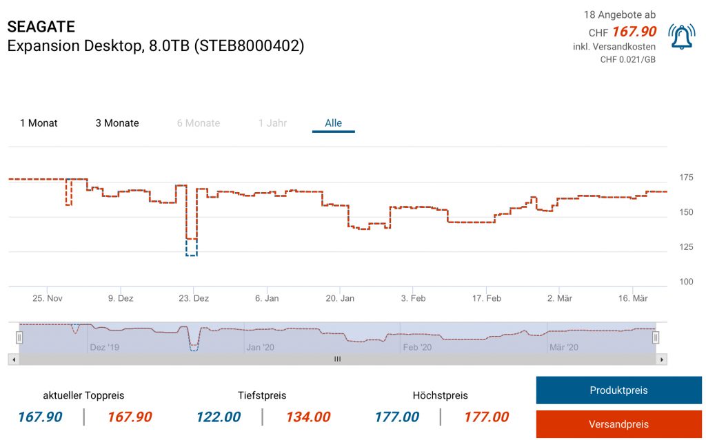 Bei amazon.de gibt es aktuell die SEAGATE Expansion Desktop, 8.0TB für 129.- EUR.
