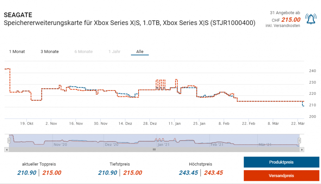 Bei Amazon kann man sich derzeit die 1TB grosse Speicherkarte für die Xbox Series Konsolen zum neuen Bestpreis von knapp 192 Franken sichern! Laut toppreise liegt der tiefstgemessene Bestpreis beim jetzigen Vergleichspreis von 215 Franken.