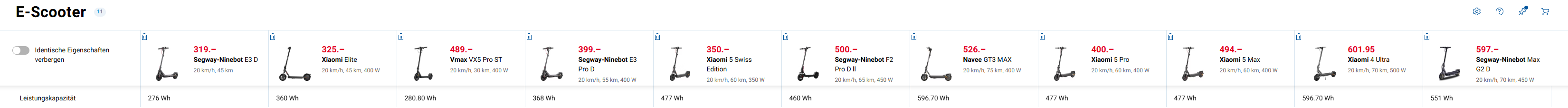 Aktuell gibt’s bei MediaMarkt den SEGWAY E3 D E-Roller zum Bestpreis für CHF 319.-! Als Alternative bietet auch digitec-galaxus den Scooter zum gleichen Preis an, beim nächstgünstigsten Anbieter mit vollwertiger Garantie liegt der Vergleichspreis sonst bei 349.95 Franken.
