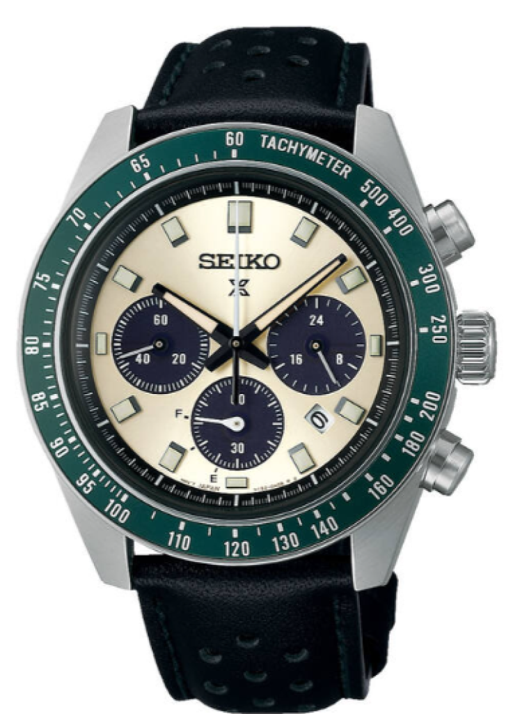 Die Seiko «Prospex Speedtimer» Herrenuhr ist ein Meisterstück der Präzision und Eleganz. Sie ist mit einem hochwertigen, solarbetriebenen Uhrwerk ausgestattet und verfügt über Zusatzfunktionen wie Datum und Chronograph. Sein attraktives, rundes Gehäuse aus langlebigem Edelstahl hat einen Durchmesser von 41.40 mm und eine Höhe von 13 mm, abgerundet durch ein kratzfestes Saphirglas. Das cremefarbene Zifferblatt und grüne Lünette wirken besonders attraktiv, während das strapazierfähige Lederarmband mit einem praktischen Falt-Verschluss für optimalen Tragekomfort sorgt. Mit einer Wasserdichtigkeit von bis zu 100 Metern ist diese Herrenuhr Ihr idealer Begleiter für alle Abenteuer – sowohl an Land als auch unter Wasser.