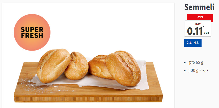 Anlässlich des 11-jährigen Jubiläums von Lidl in der Schweiz gibt es in der kommenden Zeit diverse 11 Rappen Angebote. Gestartet wird mit den Semmelis für CH 0.11 vom 2. - 4.3.2020.