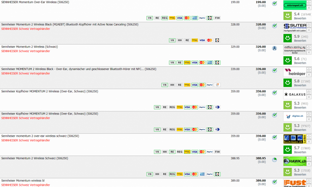 Was ich ein wenig komisch finde, dass überall anders der Kopfhörer mit Sennheiser Momentum 2 Wireless