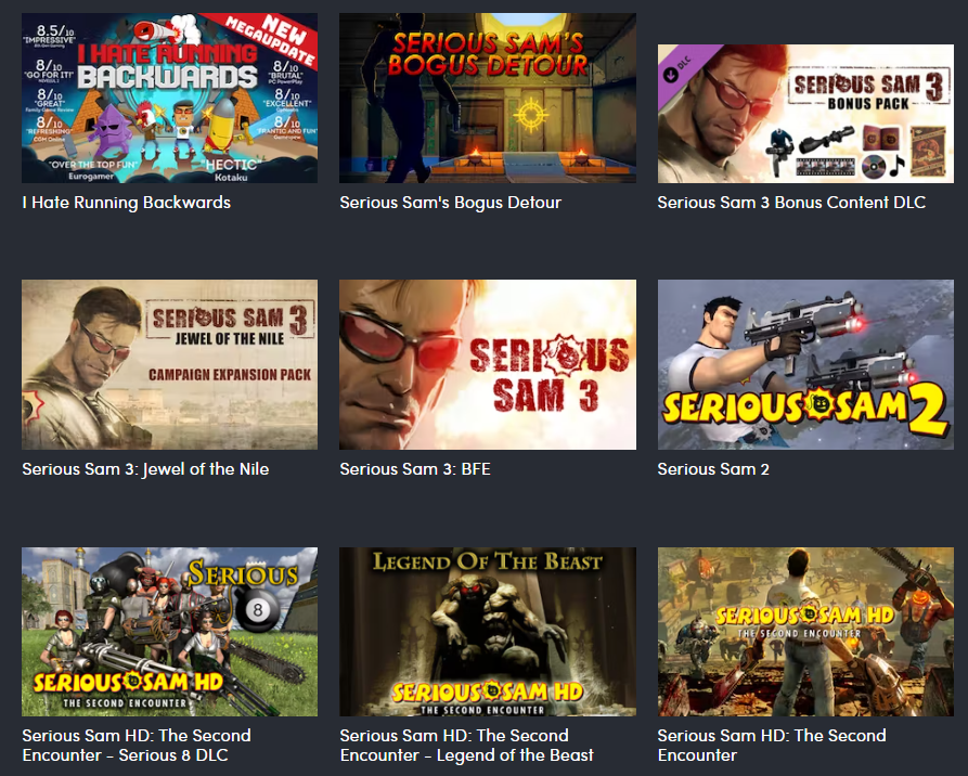 Explosions! Carnage! Rampaging hordes! Run head first into over-the-top FPS chaos with this seriously serious bundle collecting the legendary Serious Sam series all in one place! Featuring every PC (non-VR) entry in the saga along with a complete collection of DLC, this bundle is the ultimate chronicle of Sam Stone’s decades-long reign of mayhem. Get the latest game Serious Sam 4, standalone expansions like Siberian Mayhem, remastered classics like Serious Sam HD: The First Encounter, and more—and help support War Child with your purchase.
