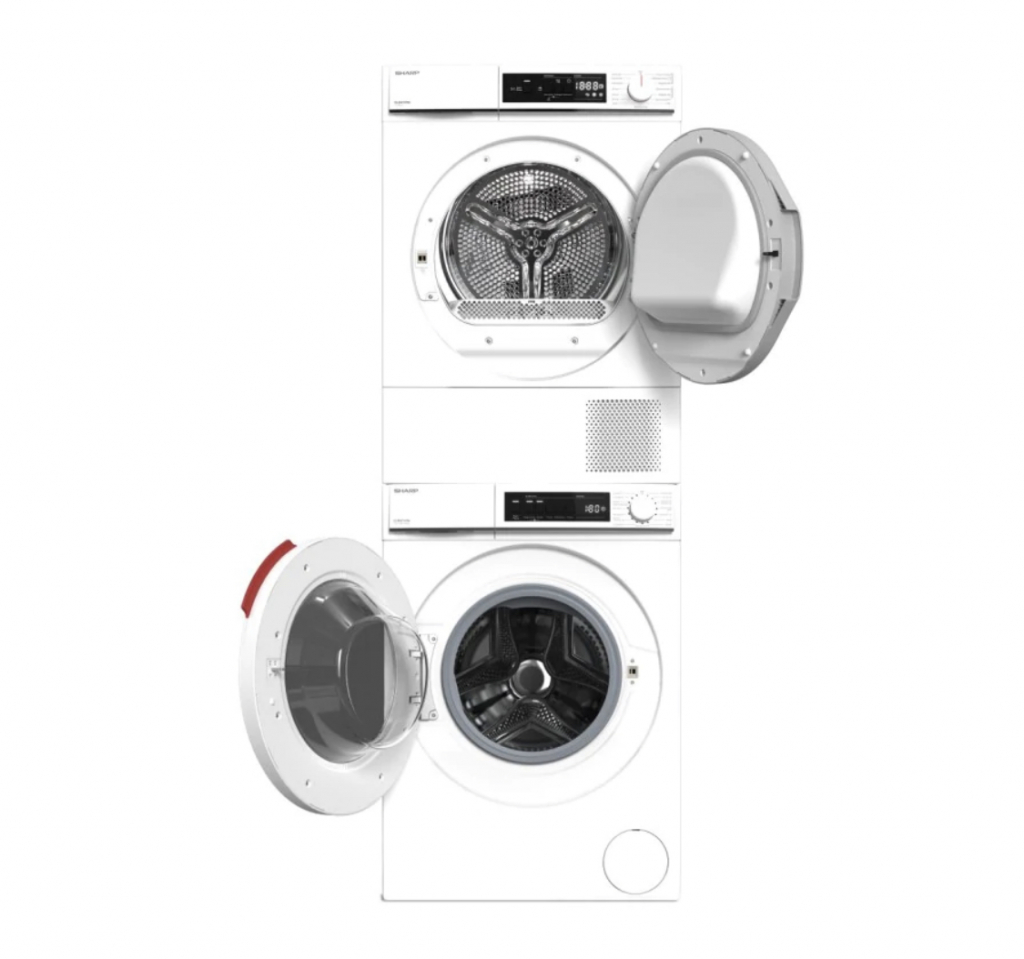 Waschturm Set Tumbler und Waschmaschine mit neuen Sharp A-Maschinenen. Die Waschmaschine einzeln hat einen Preis von mind. CHF 599.-. Bei digitec CHF 1071.-
