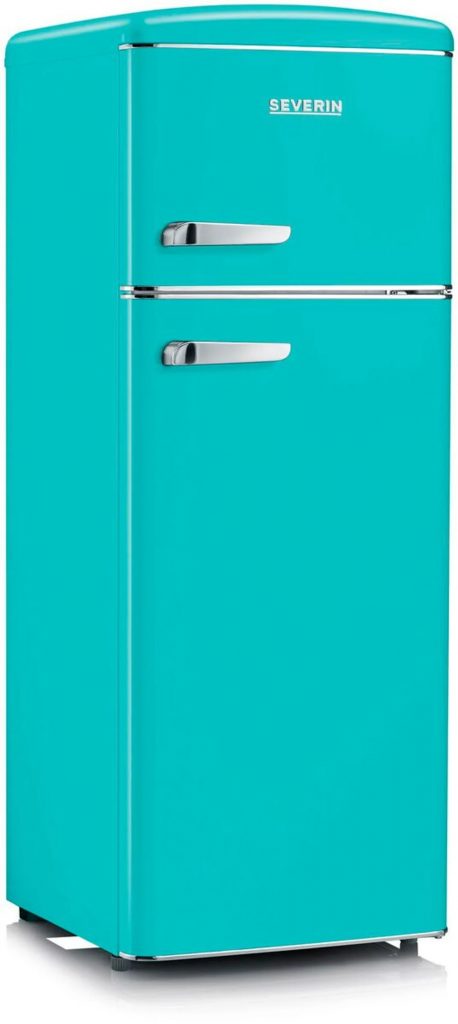 Mit seiner Türkisfarbe und den verchromten Türgriffen hat das Gerät einen Charm eines amerikanischen Diners der 50er/60er-Jahre. Passt zu einem Chevrolet Bel Air 1957 ;-).