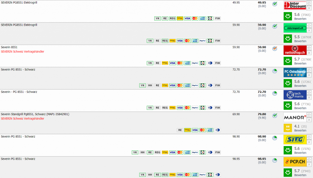 Bei Interdiscount gibt’s den SEVERIN PG8551 Elektrogrill für CHF 49.95. Lieferkosten kommen keine Obendrauf. Zweitbester Preis ist CHF 59.90, bisher war das der Bestpreis.
