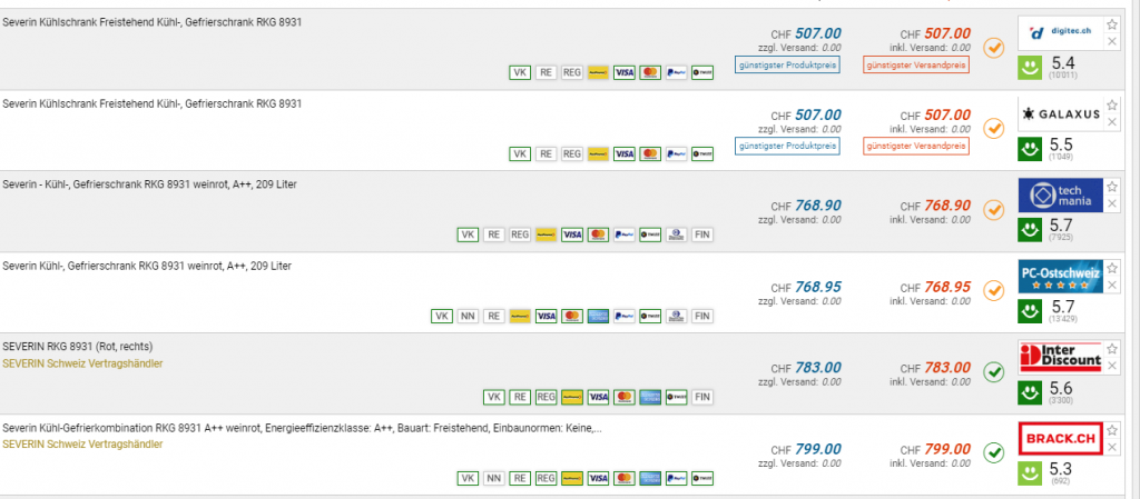 Bei digitec und dem Schwestern-Shop galaxus gibt es den SEVERIN RKG 8931 in Weinrot für den neuen Bestpreis von CHF 507.-. Der vorherige Bestpreis war CHF 681.10. Der zweitbeste Preis beträgt CHF 768.90.