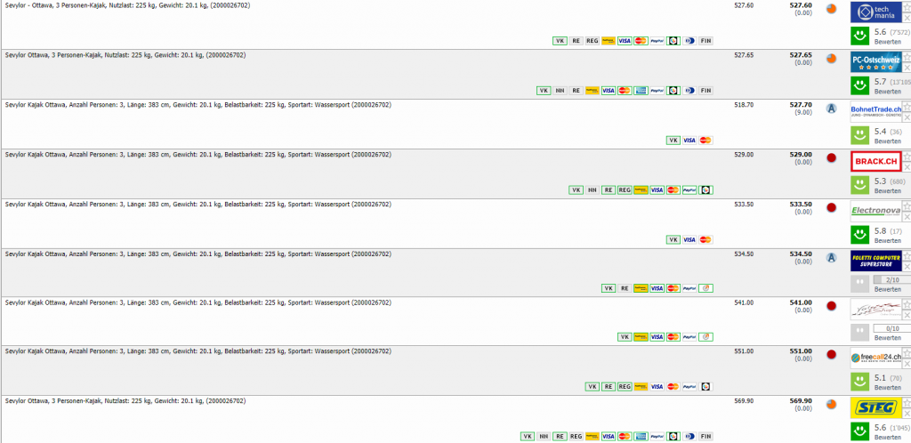 Im DayDeal gibt’s heute das Sevylor Ottawa Kayak für nur CHF 399.-. Das ist mehr als CHF 100.- günstiger als der bisher niedrigste von toppreise.ch verzeichnete Preis. Auch gegenüber den aktuellen anderen Angeboten überzeugt der Deal, denn der günstigste Vergleichspreis liegt bei CHF 527.60.