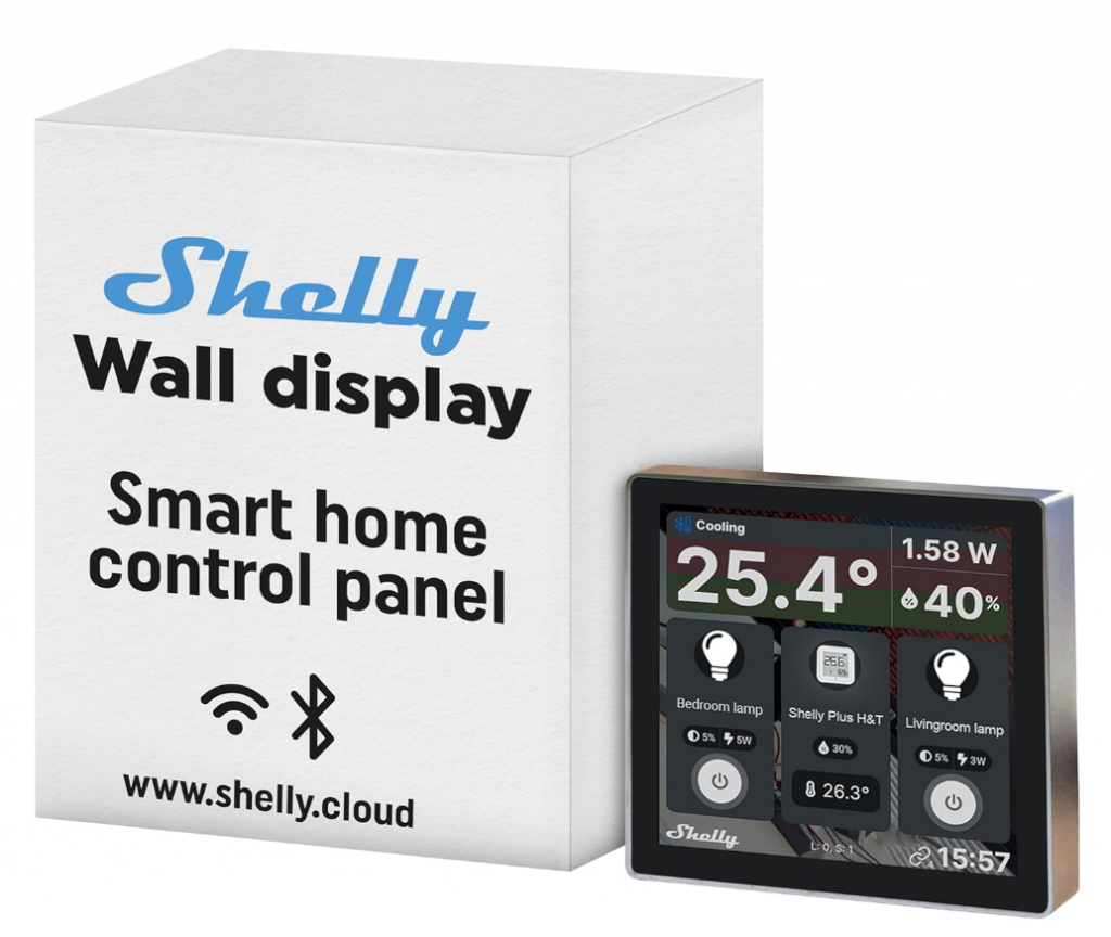- Shelly Wall Display ist ein Ein intelligentes Bedienfeld mit integriertem 5-A-Schalter und Farbdisplay, Thermostat-Funktionalität,Integrierter Schalter: Shelly Wall Display ist ein intuitives 4″-Wanddisplay, das Ihnen eine einfache, zentrale Steuerung und Überwachung all Ihrer Shelly Geräte ermöglicht.