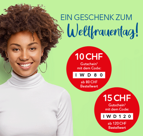 Gutschein gültig ab dem genannten Mindestbestellwert. Höchstbestellwert CHF 300. Nur ein Gutschein pro Bestellung. Gutschein nur einmal pro Kunde verwendbar. Keine Kombination mit anderen Gutscheinen. Keine Barauszahlung. Gültig bis zum 07.03.2021.