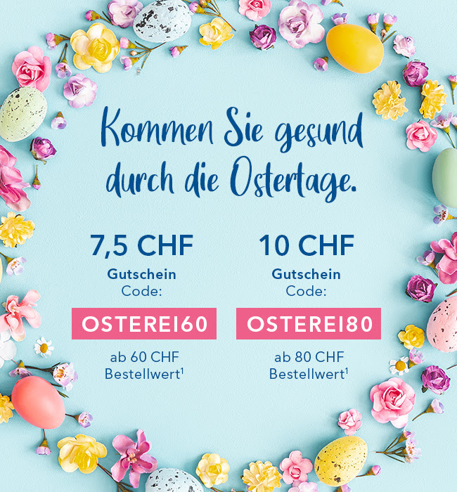 - Gutscheincode: OSTEREI80 gibt 10.- Rabatt ab einem Bestellwert von 80 Franken