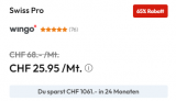 Bei alao gibt es das Wingo Swiss Plus Abo für CHF 24.95 im Monat anstatt CHF 63.- im Monat. Das ganze wird kostenlos aktiviert und man hat Lebenslang ...