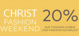 Bei Christ gibt es immer wieder Aktionen, durch die man eine Menge Geld sparen kann. Das ganze Jahr über kann man in der Outlet-Kategorie heruntergesetzte Artikel finden. Darüber hinaus werden aktuelle Angebote in einer eigenen Kategorie beworben. Bei Schmuckstücken, wie den Produkten von Christ, lohnt es sich natürlich extrem, wenn man einen Rabatt bekommt. Hier sind einige frühere Aktionen des Händlers aufgeführt, die in Zukunft durchaus wiederholt werden könnten:- 20% Rabatt auf Fashion Uhren und Fashion Schmuck