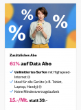 - Datenabo mit 300 Mbit/s ohne Mindestvertragsdauer für CHF 19.- im Monat
