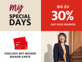 - 8 Special Days: Während acht Tagen gibt es täglich wechselnde Promos. Oft gibt's während dieser Zeit 20% auf bestimmte Marken oder ganze Kategorien. Profitieren können nur Manorkarten-Besitzer. Häufigkeit: 2x im Jahr. Jeweils gegen Anfang April und Anfang Oktober.
