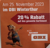 OBI - 10% Rabatt ab 100.- Einkauf auf deine Online Bestellung Gültig bis 31.01.2025 Mindestbestellwert CHF 100.- Gültig auf das ganze Sortiment. Pro Person ...