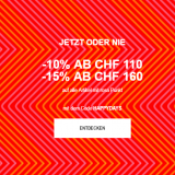 Vom 01.10.2020 um 14:00 Uhr bis zum 06.10.2020 um 23:59 Uhr mit dem Code GOLD4YOU -30% ab CHF 140.- auf Top-Marken. Alternativ ab CHF 115.- kann man sonst den ...