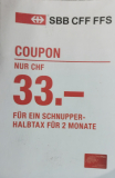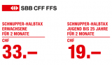 Immerhin gibt es aber regelmässig SBB Schnupper-Halbtax Abos zum Preis von 33 Franken während 2 Monaten. Dieser Betrag wird auch beim Abschluss eines Jahresabos vollkommen angerechnet.