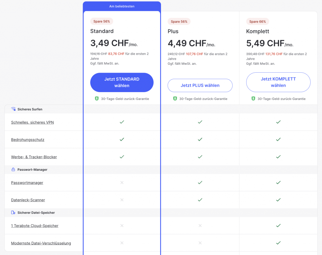 - 56% Rabatt auf die „Plus“ und „Standard“ Pakete