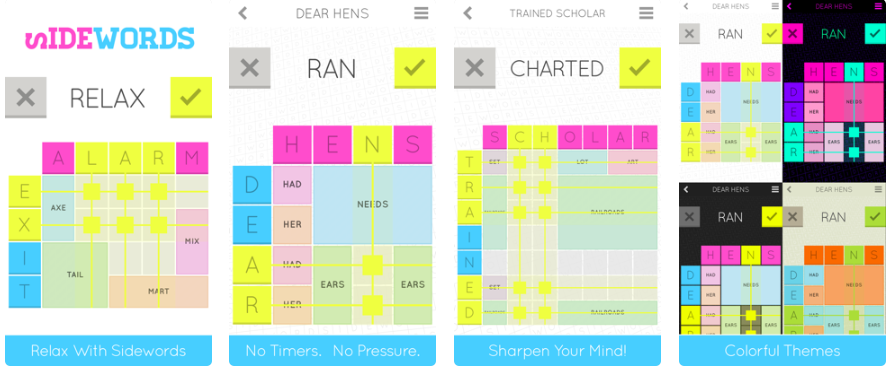 Grab a cup of coffee and relax with Sidewords. Sidewords is part logic puzzle, part word game, all original. No timers. No penalties. No pressure. Just you and a good puzzle. Sharpen your mind with hundreds of puzzles, from small and quick, to large and captivating. Plus three new puzzles to do every day! There’s even a bonus game included! Choose a color scheme that fits your mood and environment. Get your morning started with bright colors, or unwind at the end of a long day with a dark theme.