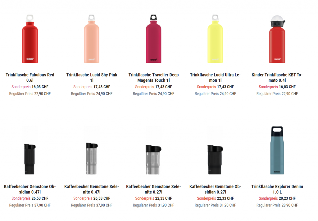 Bei SIGG läuft gerade der Mid Season SALE mit 30% Rabatt auf 59 Produkte. Hier einige Beispiele: Der Versand ist gratis ab einem Bestellwert von CHF 29.90 Der SALE läuft noch bis am 30. April. Ein Gutscheincode ist nicht notwendig.