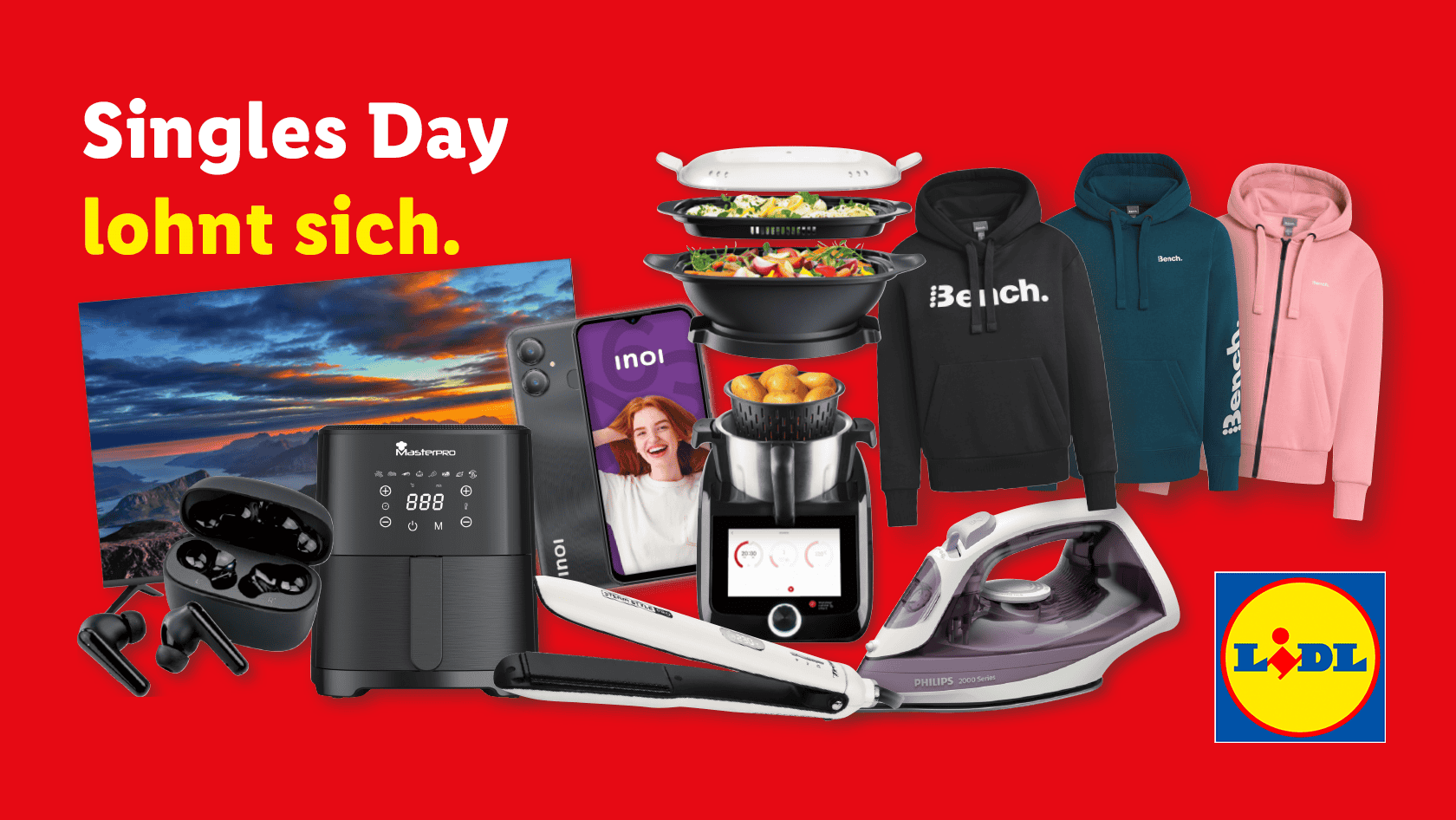Entdecke jetzt die Singles Day Angebote bei Lidl! Tolle Technik und Modeangebote warten auf Dich! Nur für kurze Zeit ab Montag, 10.11.2025.