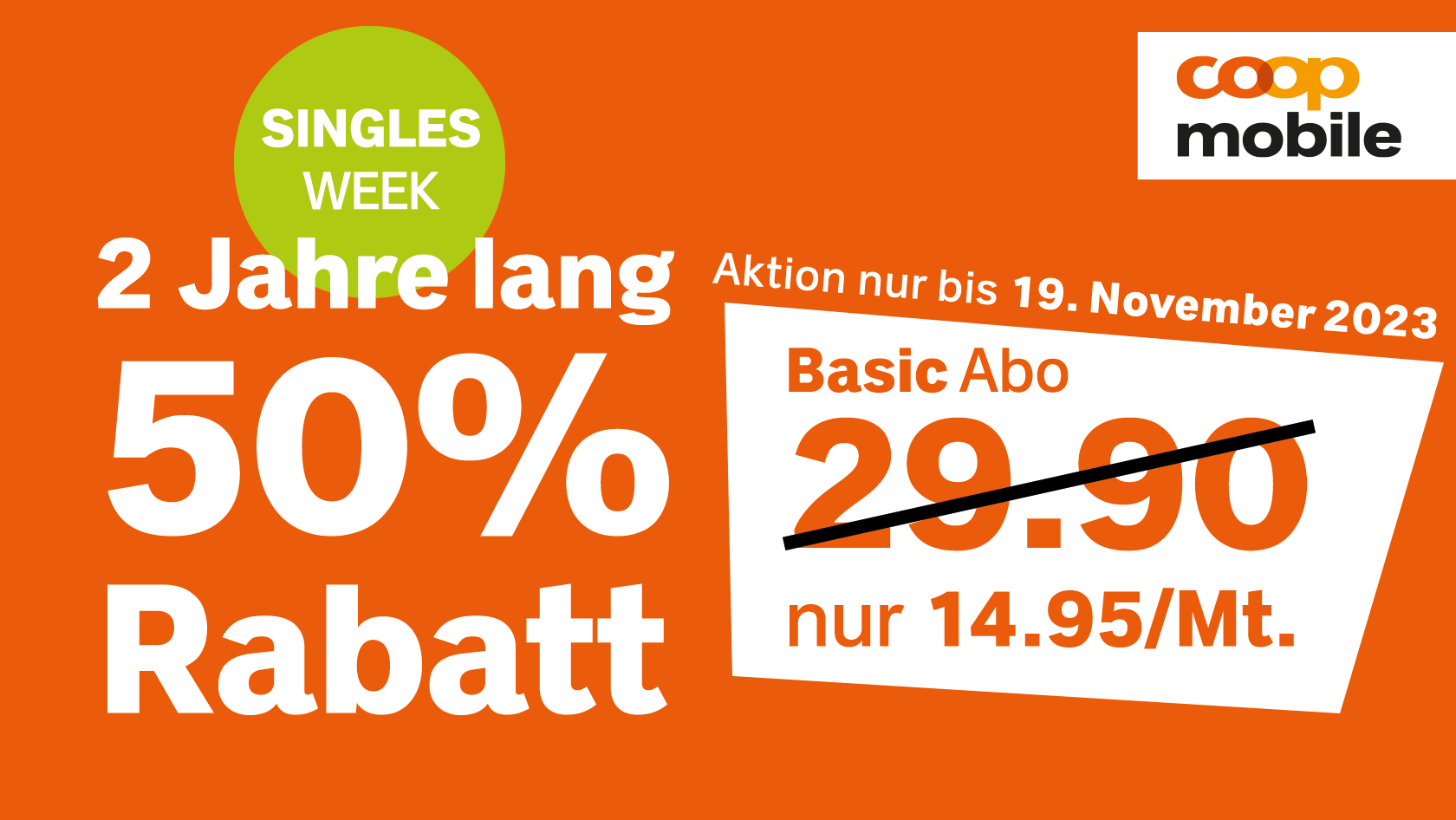 Wir machen aus einem Singles Day die Singles Weeks. Jetzt 2 Jahre nur 14.95 statt 29.90/Mt. Unbegrenzte Anrufe & 4 GB /Mt + 50 GB im Wert von 375.- geschenkt. Nicht genutzte Daten werden automatisch in den nächsten Monat übertragen.