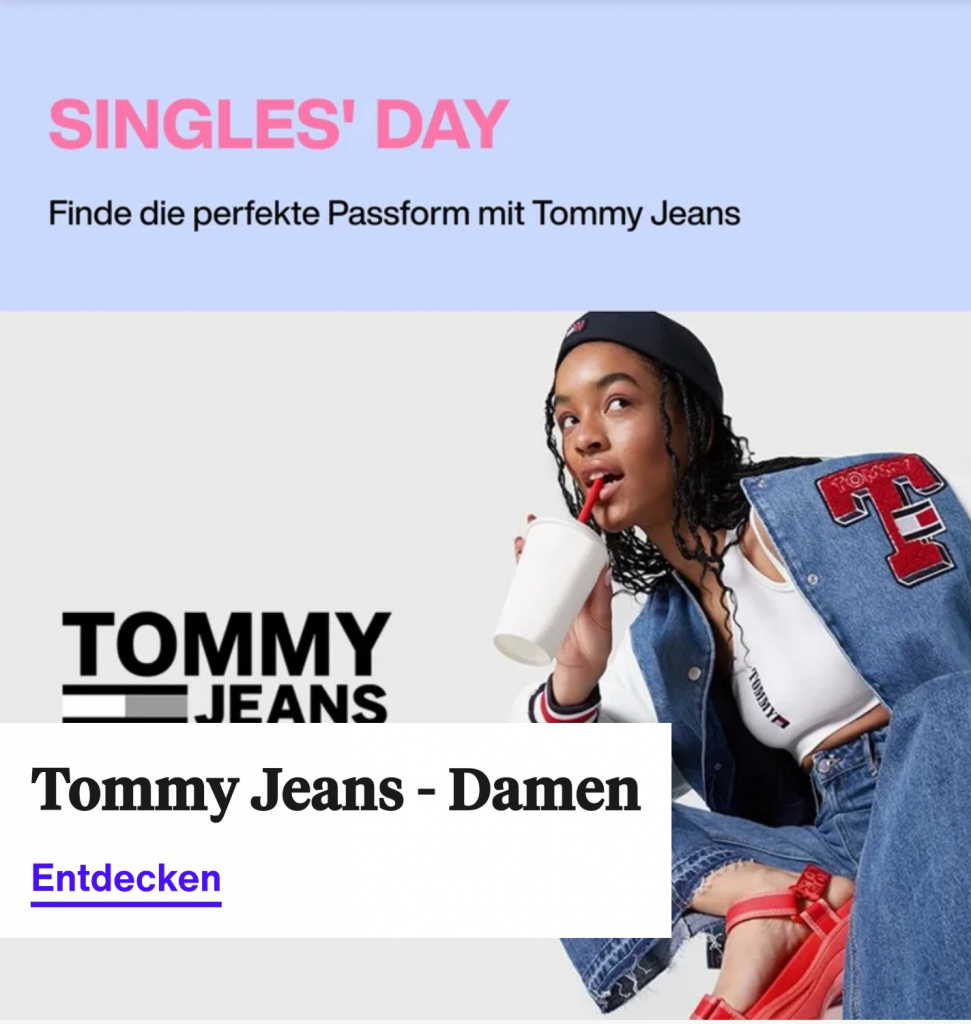 Bei Zalando Lounge gibt es zurzeit ein Singles Day Special mit verschiedenen Tommy Jeans Damen Artikel zu Toppreisen. Zum Beispiel gibt es aktuell das Tommy Jeans Damen Poloshirt für CHF 33.90 statt CHF 55.-