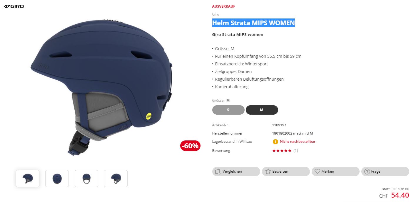 Ohne Anprobe würde ich keinen Helm online ordern ausser man hat sein Model und kann es nachkaufen. Es gibt 2-3 Artikel wo man ins Geschäft gehen sollte, sonst wird das Schnäppchen schnell zum Fehlkauf!