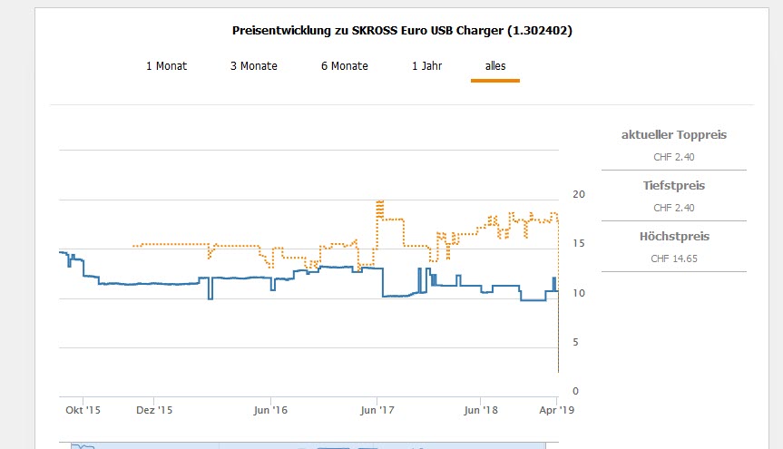 Den USB Doppel-Charger von SKROSS gibt es jetzt für 2.40.
