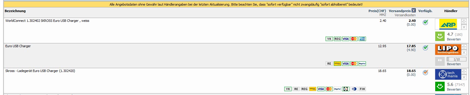 Mir sind zwar schon 2 solcher USB-Adapter ausgefallen (von Sets mit dem Weltadapter) aber bei 2.40 gibt es einen dritten Versuch :-)