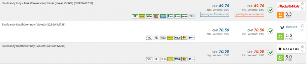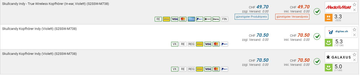 Bei MediaMarkt gibt es die SKULLCANDY Indy Truly Wireless Kopfhörer für den neuen Bestpreis von CHF 49.70. Der vorherige Bestpreis war CHF 59.-. Der zweitbeste Preis beträgt CHF 70.50.