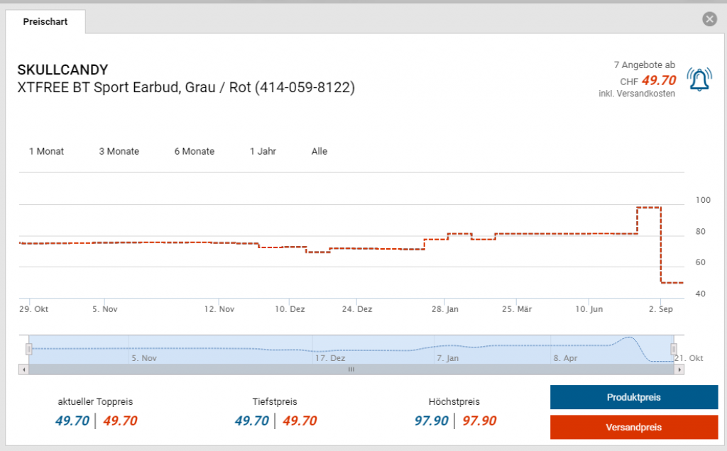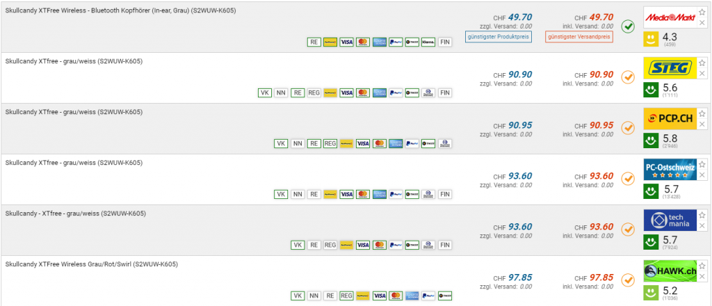 Bei Media Markt gibt es die SKULLCANDY XTFREE BT Sport Earbuds für den neuen Bestpreis von CHF 49.70. Der vorherige Bestpreis war CHF 69.20. Der zweitbeste Preis beträgt CHF 90.90.