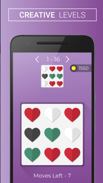 Klicken und ziehen Sie Ihren Finger in horizontaler oder vertikaler Richtung (nach oben, unten, links und rechts). Sehen Sie, wie sich der Block bewegt, und denken Sie daran, dass Dinge, die den Bildschirm verlassen, immer vom anderen Ende zurückkommen. Machen Sie aus zufälligen Blöcken eine schöne Form über dem Spielbereich (a.k. ein Zielbild) und erleben Sie das farbenfrohe Entspannungserlebnis.