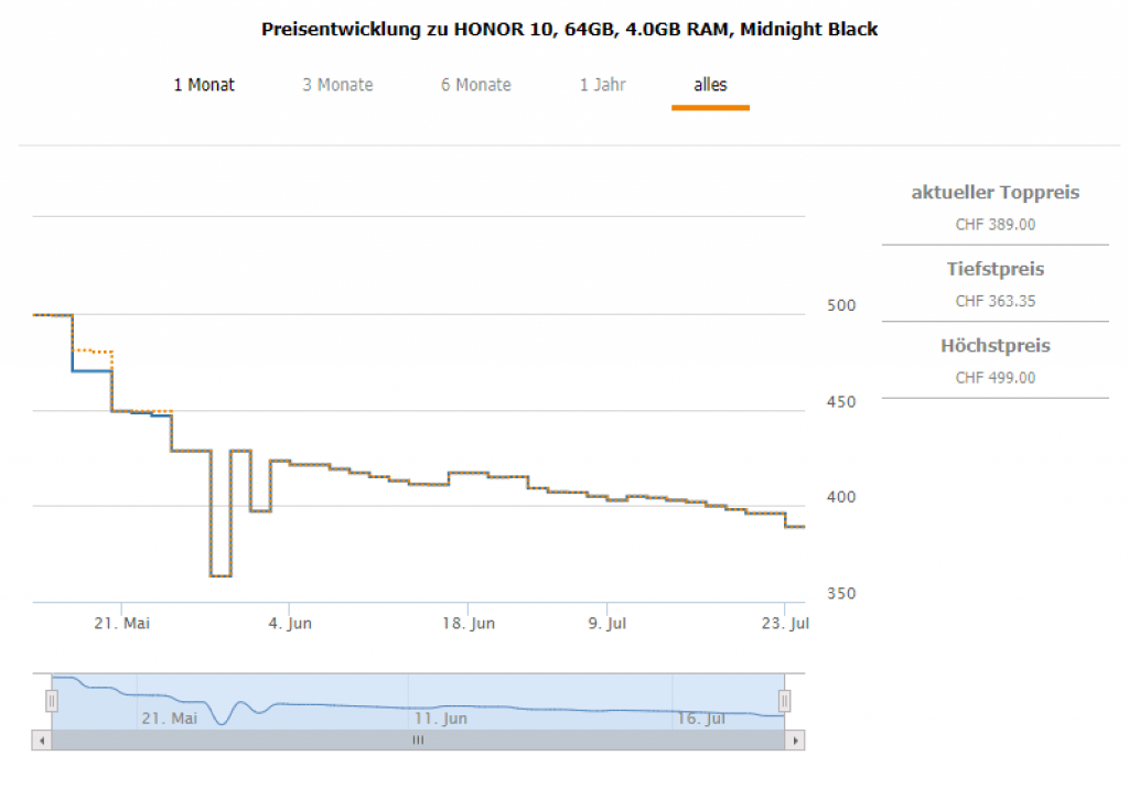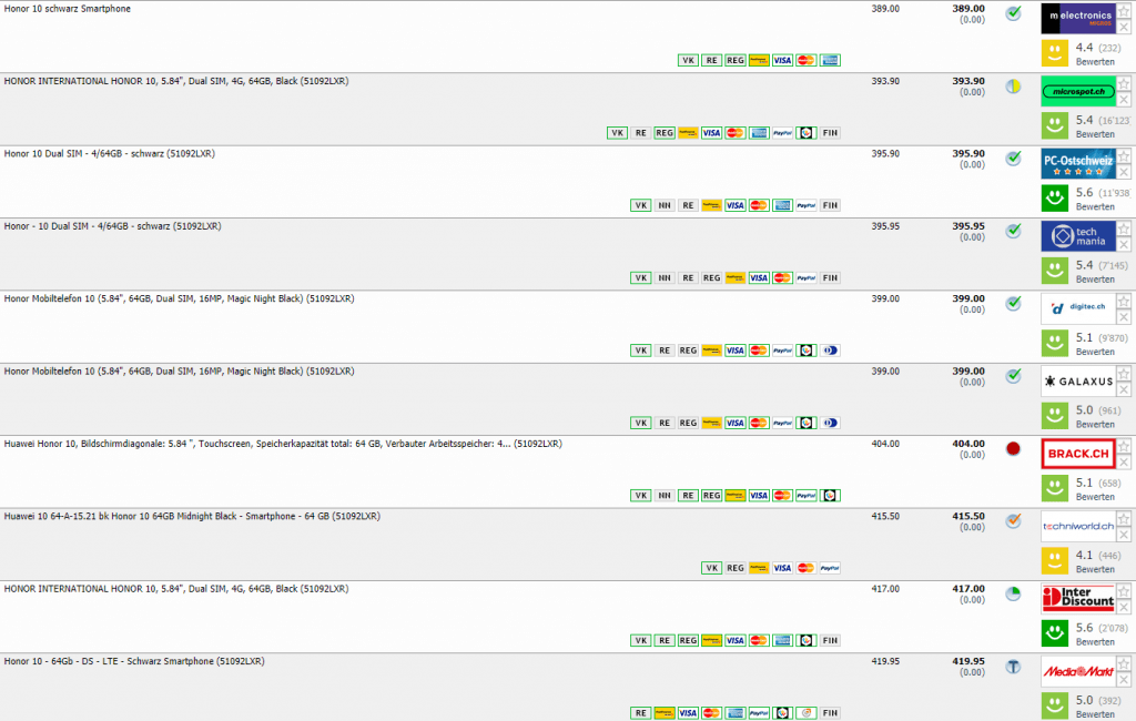 Bei melectronics gibt’s gerade das HONOR 10 in der Farbe schwarz für CHF 340.10. Zweitbester Preis in der Schweiz liegt bei CHF 393.90, günstiger als für CHF 363.- gab’s das Handy in der Schweiz noch nie.