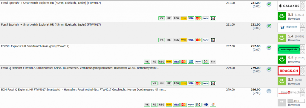 Bei Galaxus gibt’s gerade die Fossil Q Explorist HR Smartwatch zum neuen Bestpreis von CHF 231.- Vormaliger Bestpreis war bei CHF 243.50, zweitbester Preis beträgt CHF 257.-