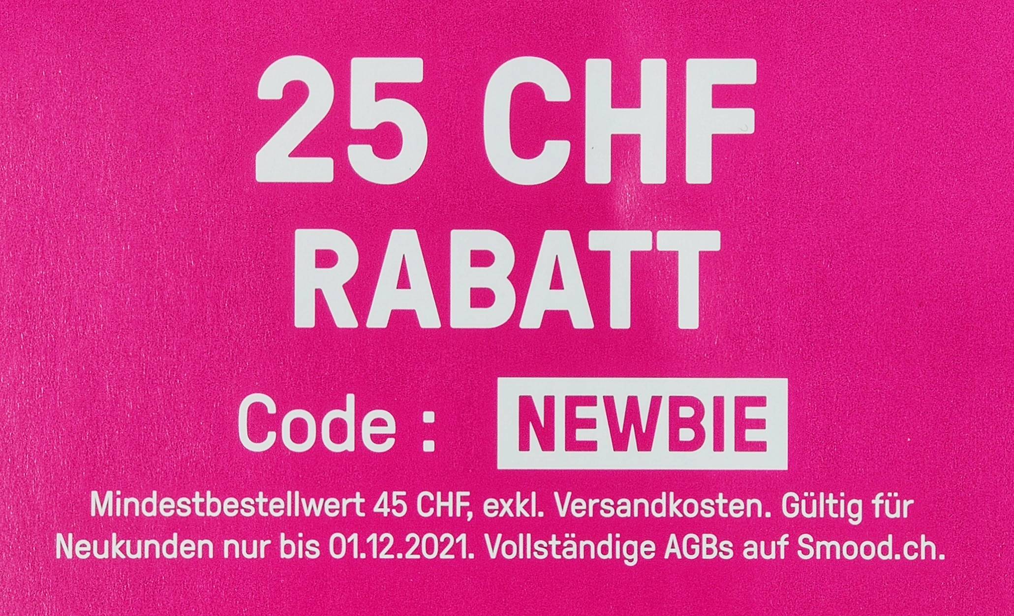 SMOOD ist wieder mal grosszügig. Mit dem Code „NEWBIE“ gibts 25 Franken Rabatt bei einem Mindestbestellwert von 45 Franken. Kombinierbar mit Wallet Guthaben. Falls ihr also noch 20.- von der Freundschaftswerbung habt, gibts Gratisessen im Wert von 45.- 😉