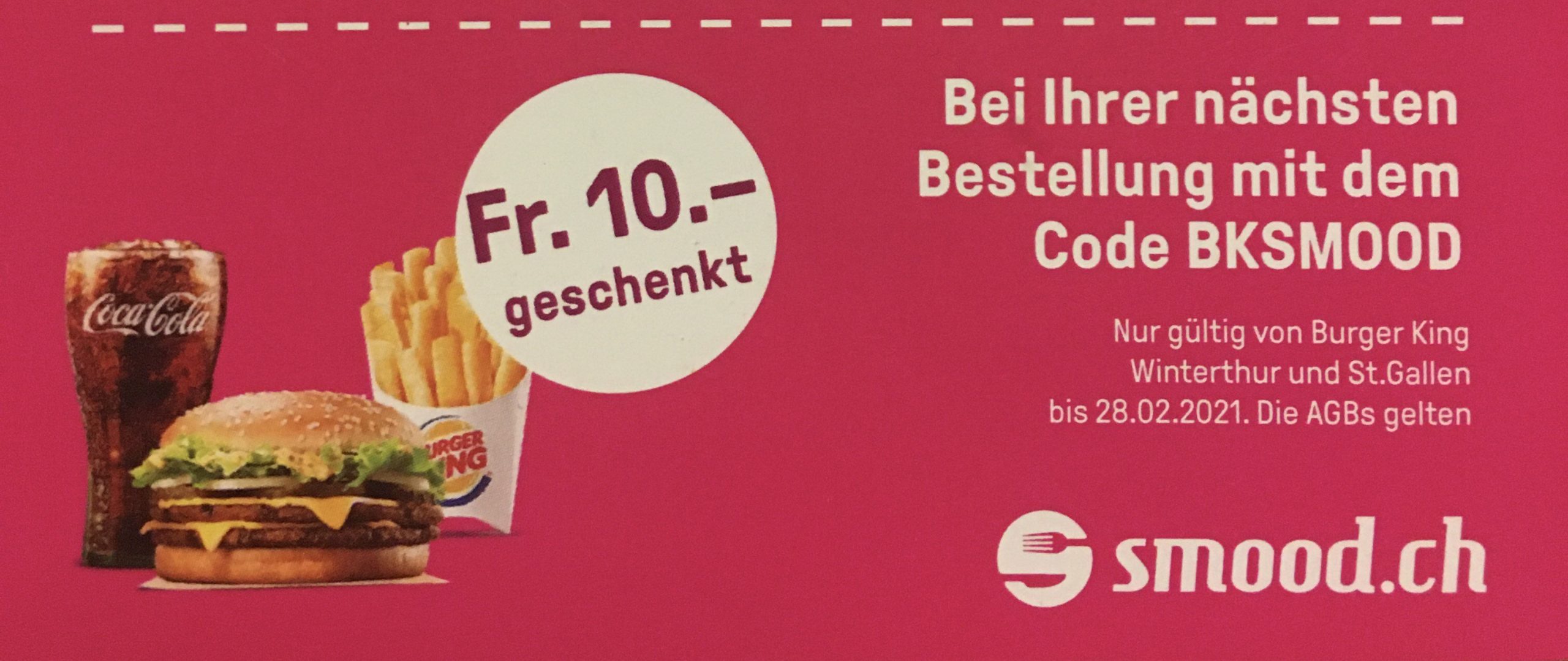 Smood: CHF 10.- geschenkt - Burger King Winti & St.Gallen