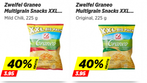 Im Denner und Coop gibt es aktuell und zum selben Preis die Zweifel Graneo XXL in den Geschmacksrichtungen „Original“ und „Mild Chili“ für je CHF 3.95.