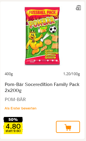 Im Coop gibt es nebst den bereits erwähnten Zweifel Graneo noch die Pom-Bär Soccer-Edition mit 50 % Rabatt sowie als Alternative noch die 1 kg Grosspackung Ültje Bar Mix für CHF 11.95.