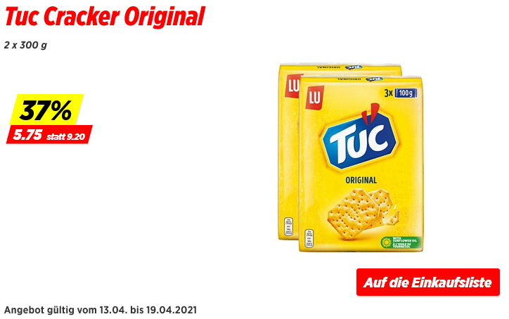 Aus dem Denner habe ich euch die TUC Original Cracker herausgesucht. Diese gibt es in der Aktionspackung 2 x 3x100g für CHF 5.75 anstatt CHF 9.20. Wer einen Coop in der Nähe hat, erhält sie dort für CHF 5.95.