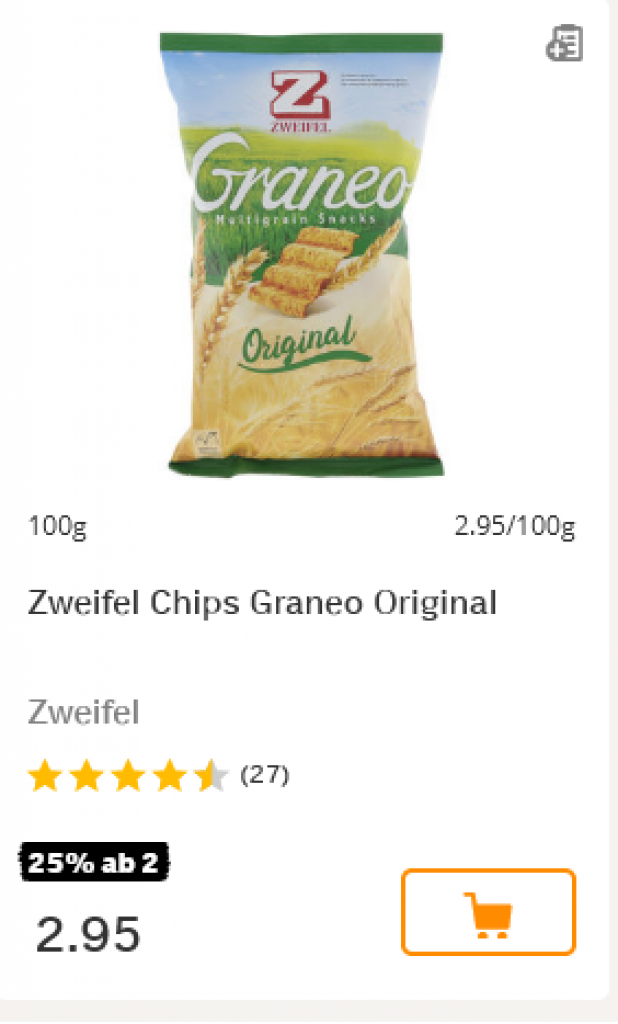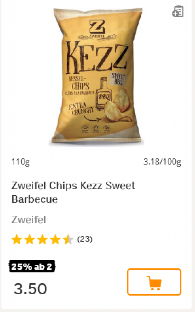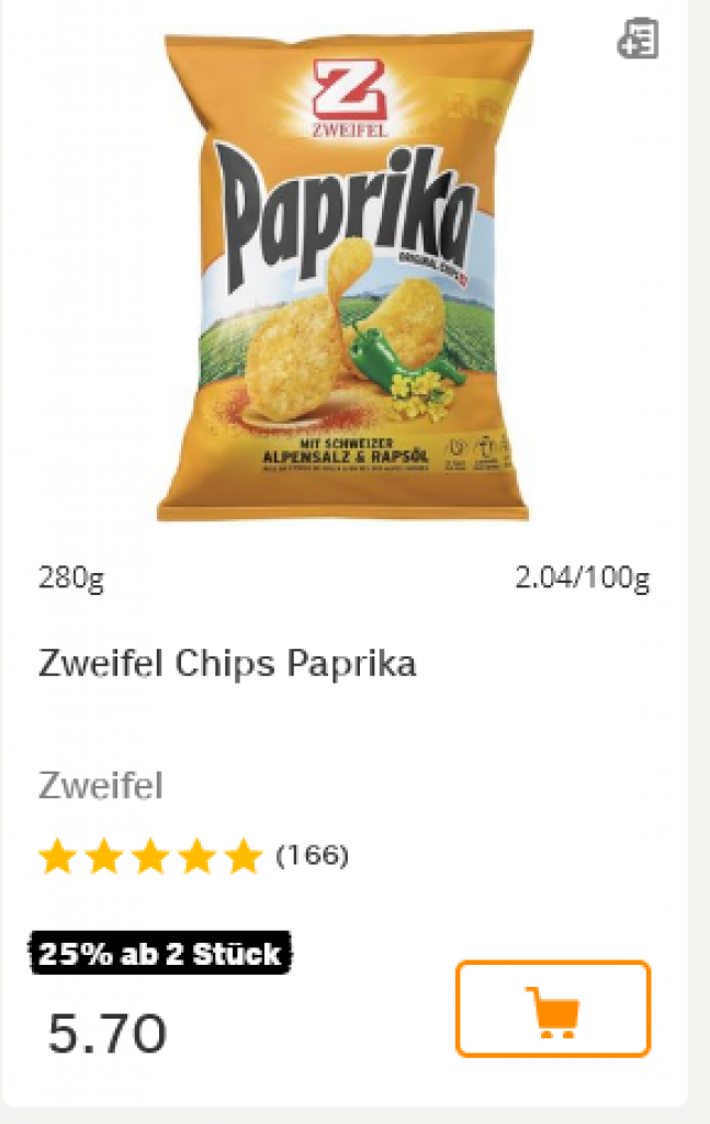 Coop hat diese Woche generell 25 % auf Zweifel ab einem Einkauf von mind. zwei der gleichen Produkte. Nachfolgend eine nicht repräsentative Auswahl: