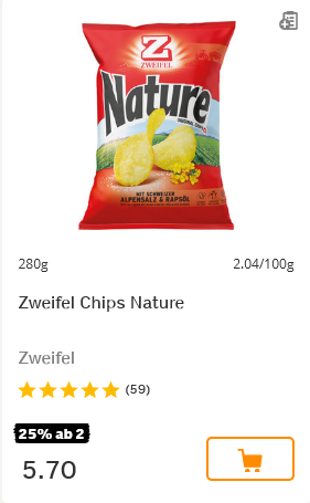 Coop hat diese Woche generell 25 % auf Zweifel ab einem Einkauf von mind. zwei der gleichen Produkte. Nachfolgend eine nicht repräsentative Auswahl: