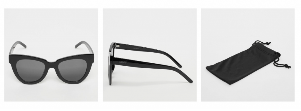Die Sonnenbrille ist im trendy Cat-Eye Look und kommt mit einem Brillensäckchen. Sicherlich nicht die qualitativ hochwertigste Sonnenbrille (Material ist höchstwahrscheinlich Plastik), jedoch für einen echt guten Preis.