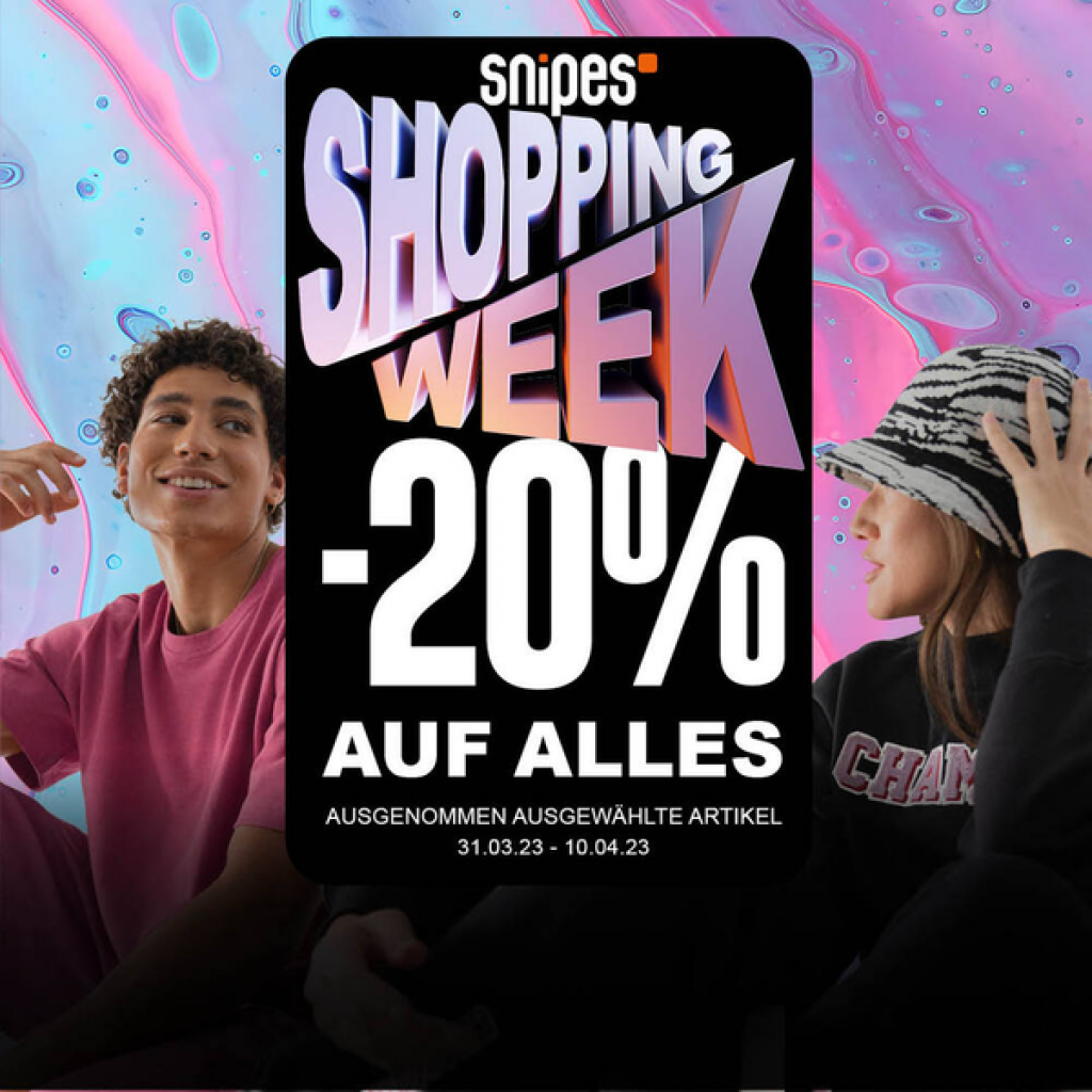 Ab heute läuft die SNIPES Fashion Week mit 20% auf alles*! Profitiere bis zum 10.04. von vielen attraktiven Angeboten auf Bekleidung, Schuhe, Accessoires und mehr.