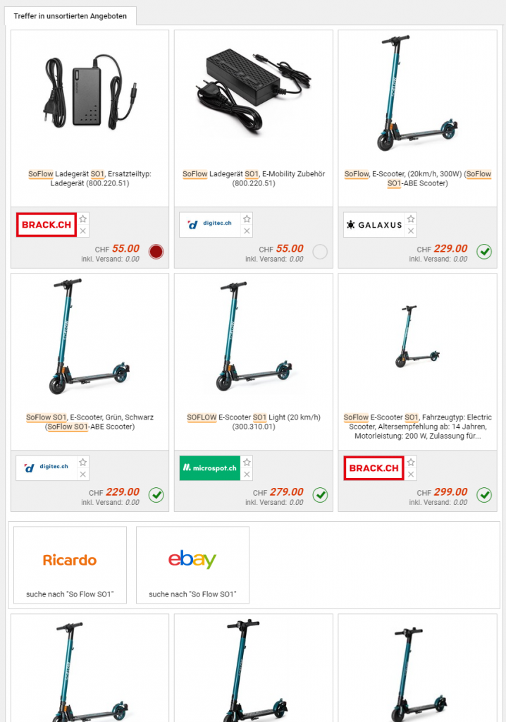 Bei Daydeal und digitec gibts derzeit den günstigen Elektro-Scooter So Flow1 zum Aktionspreis von CHF 229.- Laut toppreise starten die Preise sonst bei 279 Franken.