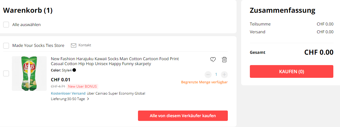 Bei AliExpress erhält man momentan knackige gratis Socken.