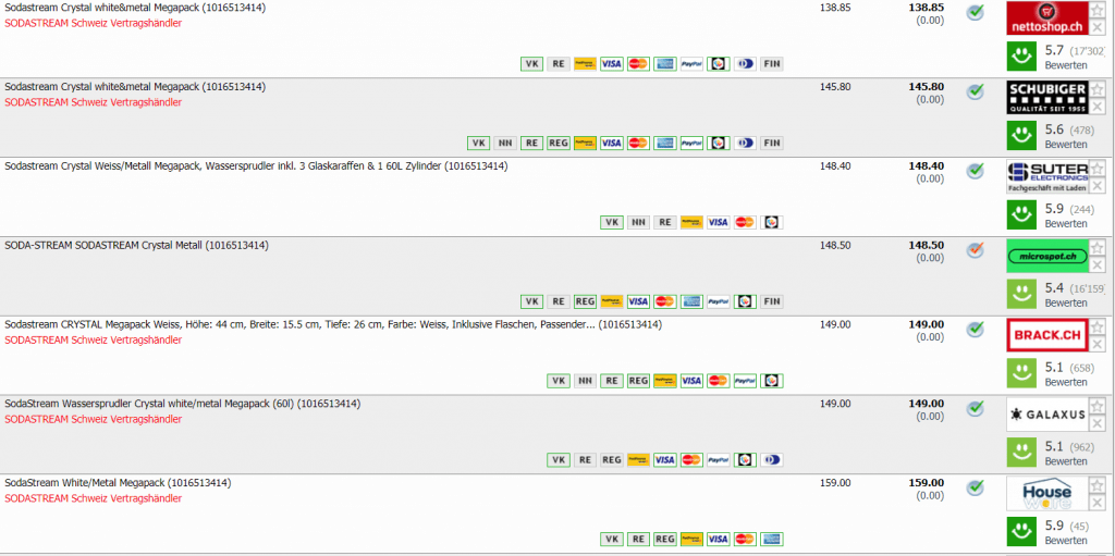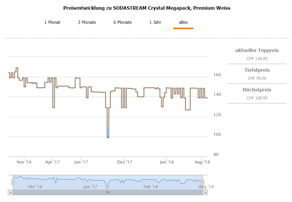 Bei DayDeal gibt’s heute das SODASTREAM Crystal Megapack in weiss für CHF 99.- wenn man sich zusätzlich den Gutscheincode bei game.brack.ch sichert. Der zweitbeste Preis in der Schweiz liegt bei CHF 138.85. Inkl. Lieferung erhielt man das Set bisher nie unter CHF 108.90, ohne Lieferung konnte man das Set auch schon für CHF 99.- erwerben.