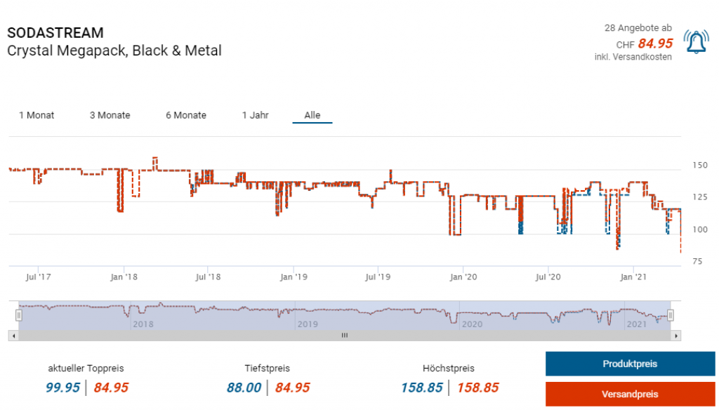 Bei microspot gibts derzeit das Sodastream Megapack mit 3 Glaskaraffen zum neuen Bestpreis von knapp 85 Franken. Der Vergleichspreis liegt derzeit sonst bei über 119 Franken.