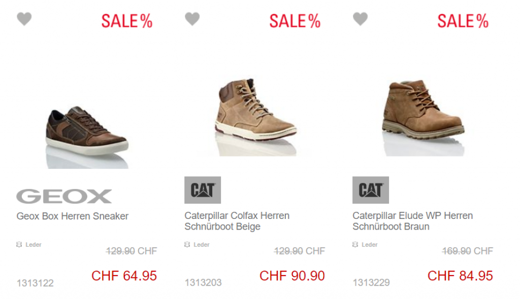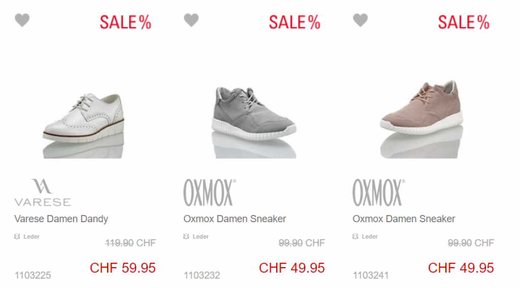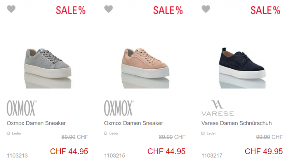 Tipp: Oben in der Sortierung Schuhgrösse und Geschlecht auswählen, dann werden nur noch die passenden SALE-Schuhe angezeigt.